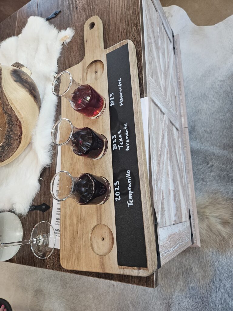 I did the tasting of red wines and tried the Mourvèdre’, Tempranillo, and the Granate, a blend of Cabernet Sauvignon, Cabernet Franc, Malbec, and Tempranillo. While the tempranillo was very nice, the Granate was my favorite. My wife had the 2023 Texas Verano, a dry white blend of Viognier, Roussanne, and Marsanne, and she really enjoyed it. I tried it as well and found it to be very refreshing. The wine prices are very reasonable compared to other Texas wineries. Tastings are $12 for a selection of 3 wines.